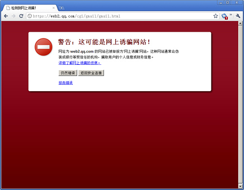 WebQQ 2.0 上线,腾讯又多了款重量级的应用,但是用过程中发现其 Gmail 模块存在钓鱼的嫌疑。当使用 Chrome 访问其 Gmail 模块时提示为诱骗网站。