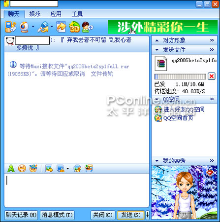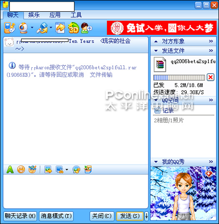 ![]() 上述数据柱状图 此外,对这一下载速度的测试,笔者还使用了网际快车等下载工具进行测试,不过加速后的结果区别不大,几本都保持在120KB/s左右,对我们测试的参考意义不大。看来网际快车一类的软件,本身对软件下载都进行了比较深的优化,这里不再具体介绍了! 四、文件传输速度对比测试 除了在网上下载文件外,现在通过IM软件给好友传输文件或者照片等也是大家的家常便饭,以前网通、电信互访问题没有得到解决前,我们经常有这种情况:急于给好友分享自己刚拍的相片,奈何传输文件的进度条就是不动,只好选择邮箱,或者通过IM的截图功能欣赏了!这一项测试中,我们就是关注使用网络加速软件后,能给文件传输带来多大的提升。我们以大家使用最广泛的QQ文件传输为例,向电信用户传输文件。 未加速前: ![]() 图18 1.统一加速器个人应用版
