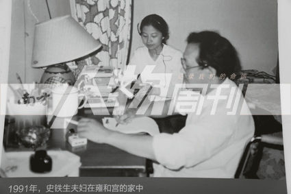 1974年,史铁生拿出当年画箱子的本事,在街道工厂找到一份临时工作——在木箱或鸭蛋上画仕女,有时候是山水,卖给外国人。没有公费医疗和劳保,他只是摇着轮椅拐进少为人知的小巷,和大爷大妈们一起挣些糊口钱,每月15元,一干就是7年。