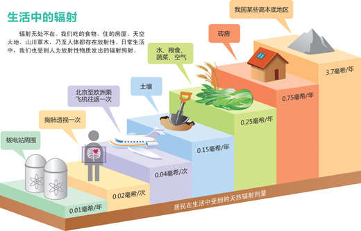 人类有史以来一直受着天然电离辐射源的照射,包括宇宙射线、地球放射性核素产生的辐射等。人类所受到的集体辐射剂量主要来自天然本底辐射和医疗。