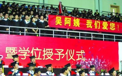 毕业生拉出“吴阿姨,我们爱您”横幅