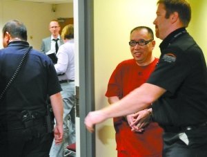 加拿大当地时间7月20日下午,赖昌星身穿囚服、戴着手铐。黄运荣 摄