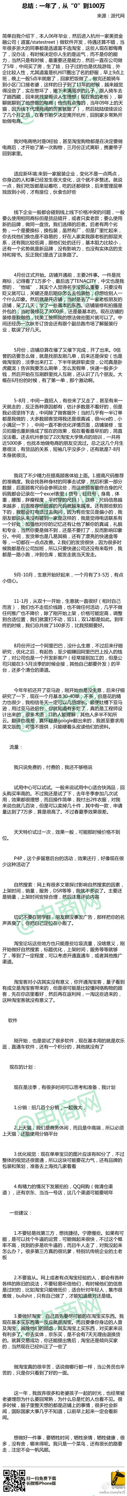 2013年6月29日 总结:一年了,从“0”到100万(转) 一年间,从0体验菜鸟到百万卖家的个人总结,其中辛酸有时,牺牲有时,收获更有时。做淘宝真的很辛苦,话说做哪行都一样,只是你只看到了好的一面…… « 上一篇 涡阳县绑架案爆出常务副县长四千万房地产 下一篇 » 【遇职业恶意差评师了,开价200元】事情最新进展!