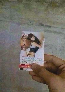 女子街头丢招嫖卡片 正面印百元大钞背面印招嫖信息