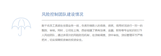 公司在上海、西安组建了具有法律、金融、财务等专业知识的179 人风控团队