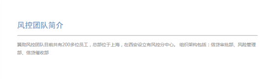 翼勋风控团队目前共有200多位员工,总部位于上海,在西安设立有风控分中心