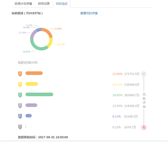 虽然目前有多个平台采用自动投标产品,但是钜宝盆理财计划的信披却更为不透明,投资者甚至都无法了解到借款人的资金用途,无法看到资金流向。在投资人确认投资前能看到的只有平台上所有项目共84357个标的组成(数据截止至2017年9月1日),但投资者却根本无法了解到自己所投投资的单个理财计划是由这其中的哪些借款项目组成。