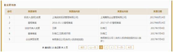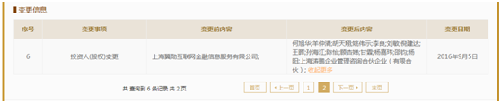 但是,时隔一年之后,江湖风云变化,翼勋互金似乎又脱离了钜派投资的怀抱。2016年9月6日,上海武欧企业管理有限公司(简称,武欧企业)从上海钜派等股东手中受让了全部翼勋互金的股权,钜宝盆成为武欧企业独资的公司。而武欧企业的股东是两个自然人,一个姓欧,一个姓武,注册资本只有1000万,成立于2015年8月,与钜派投资看上去没有任何关系。比较奇怪的是,这次离奇的股权转让到2016年12月31日都没有完成工商登记备案,一直拖到2017年7月4日才完成变更。更加奇怪的是,工商变更完成仅仅一个多月,武欧企业又将翼勋互金的全部股权转让给了上海翼勋企业管理有限公司(简称,翼勋企业),而这个翼勋企业又似乎是钜派投资的影子公司。
