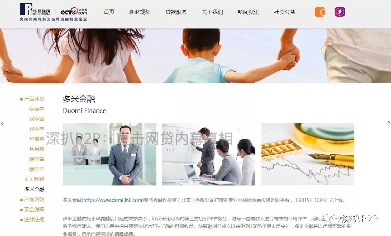 华夏融创于11月16日紧急修改官方网站网页,将多米金融信息火速进行删除。