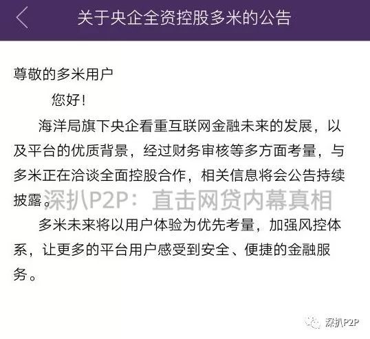 而多米金融也在同一天发布了所谓的央企全资控股的公告。