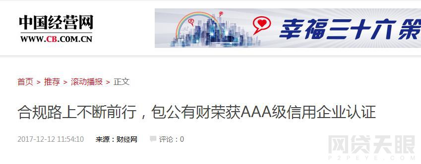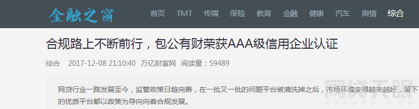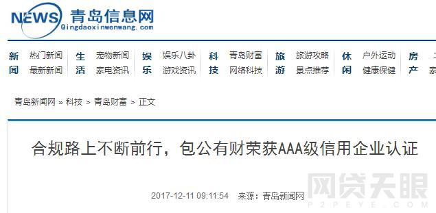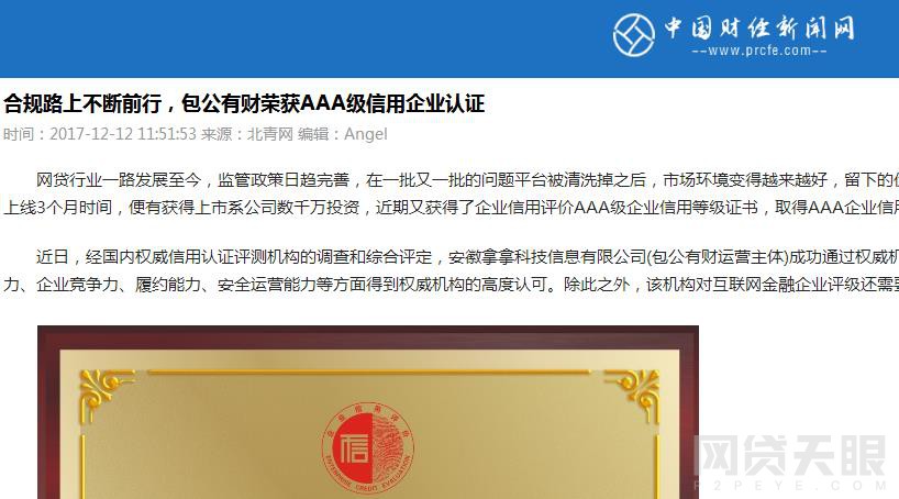 包公有财 企业信用AAA级 不合规 虚假宣传