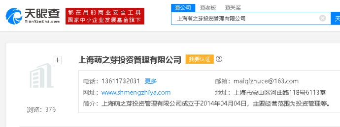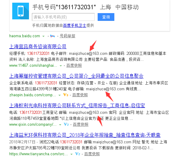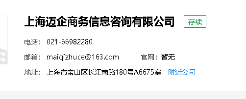 通过搜索这里的手机号和邮箱,马上就可以了解到平台对应的公司是从一个叫上海迈企商务信息咨询有限公司,这是一个专业注册空壳公司拿来卖的。目的就是让小白看起来公司已经成立很多年了,实际上平台2018年2月才上线。