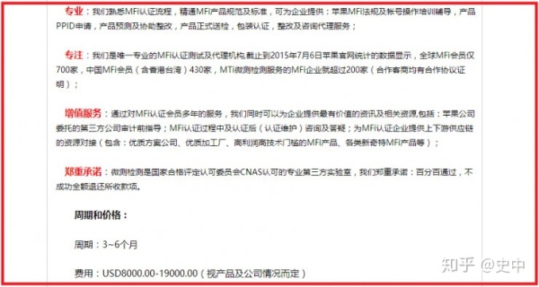 中哥联系到了深圳某公司,他们表示可以帮助企业进行 MFi 认证。这家公司的业务经理告诉我,