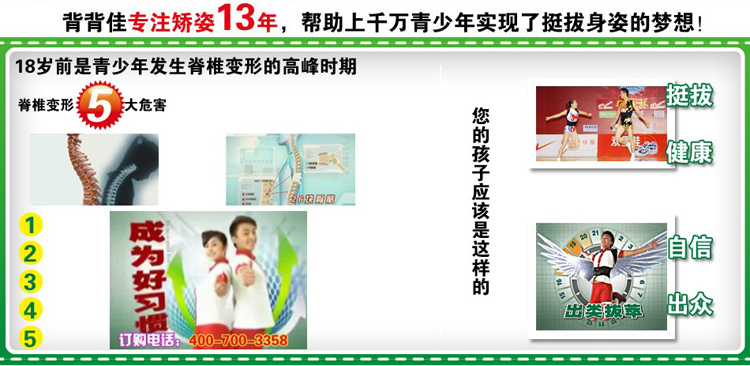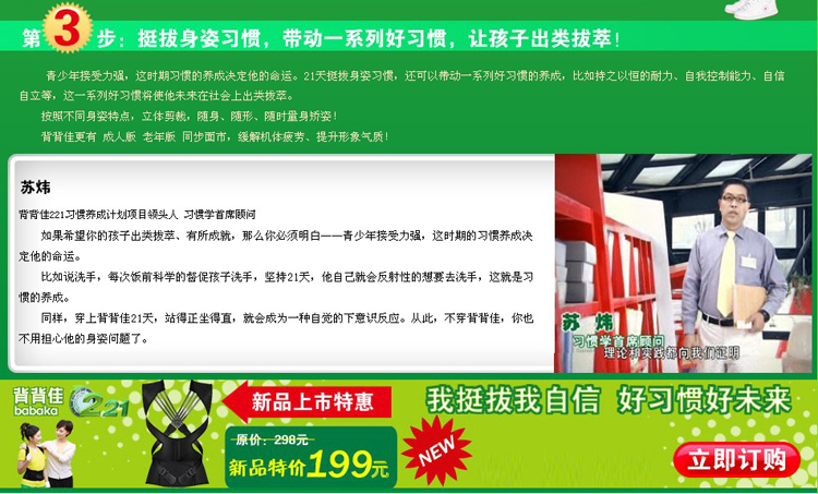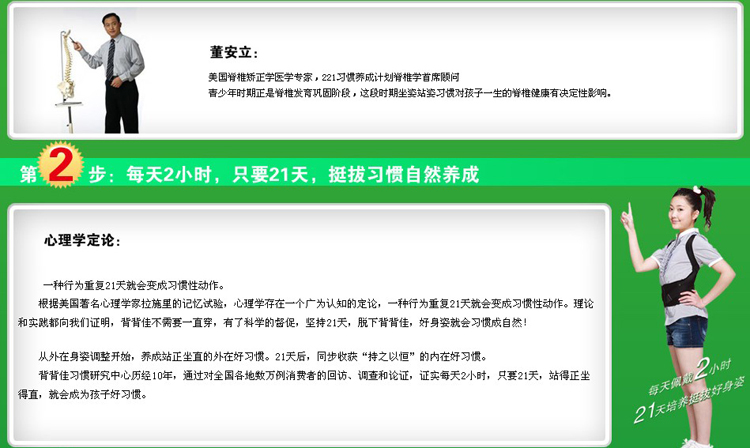 | ★每天2小时,只要21天,配合计划养成习惯量身矫姿! 一款特别打造的舒适、透气、轻便、随体等全方位于一体的智能调节矫姿工具,它以独创的3X交叉塑形矫姿法,对肩、背、腰、侧肋全方位360度均衡施力。通过十字网状伸缩滑道的自主伸缩,保证大X交叉施力点时刻处于脊椎中心位置,以达到最佳矫姿效果,让孩子时刻保持胸背挺拔。 点此到淘宝购买 | |