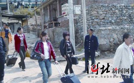 我又以住店名义进住明月饭店时拍到的对面旅馆的情景:一大群“三陪女”在“鸡头”的带领下涌进客人房间。这一家专门养小姐的旅店楼上楼下有几十张床,老板说:“我们家才养了几十个吧,苟各庄养小姐的旅店有十几家。