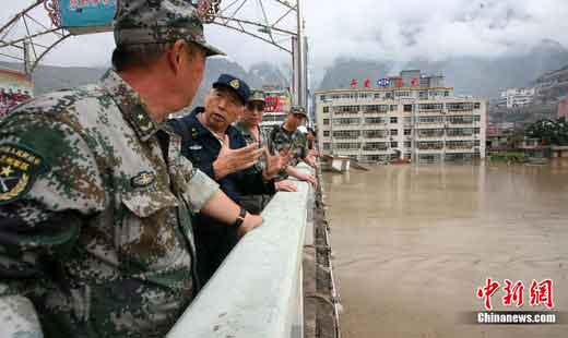 8月12日,海军某部爆破专家从青岛飞抵甘肃舟曲灾区,增援处置白龙江舟曲段河道堵塞物。180万方的淤泥和大量随泥石流冲到江中的房屋建筑物和石块清淤工作将全面展开。 中新社发 刘忠俊 摄