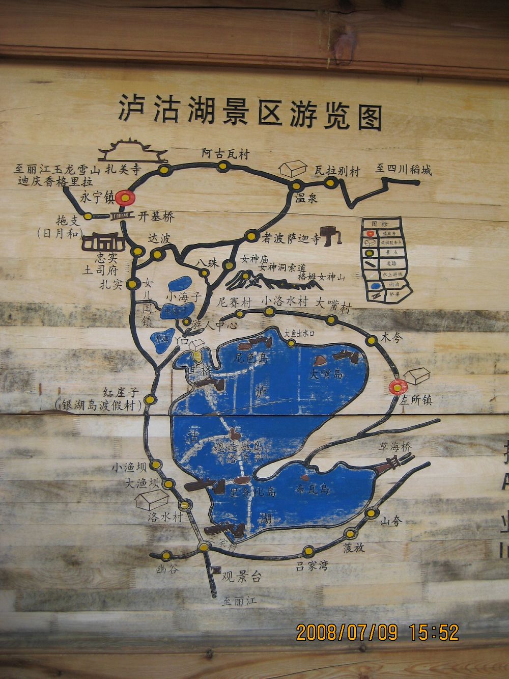 3、驴友们最好都不要坐第2种专线车。这种车基本都是在一些旅游俱乐部订票的,单程70元,来回120元,但大家不要订来回的,今天去明天回,意味着你在泸沽哪里都不能去,当然俱乐部的人会说回来订不到车的,而且这样回来也要70元,就贵了好多了,他们在欺骗你,从泸沽回丽江是50元,而且在你住的所有客栈里面都可以订到回丽江的车,根本就不太会存在订不到车的情况(但不敢保证黄金假期),还有很多到丽江的车是从四川稻城这个方向过来的,都会经过里格。另外大家要特别注意的是,你当初在俱乐部订的19人金龙车,最后都会变成15人座的金杯,挤到腿没有地方摆,行李放在腿上,因这种车是没有行李箱的,一路上因为路况不好,非常颠簸真是无法用言语来表达了,8个多小时就这样。当然他们也很聪明会把金杯的标志换成金龙的,理论的时候他们会说这就是金龙。这种专线车并不是单纯的客运,而是像个散客旅游团,所以他们赚取的并不完全是车费,而是游客的消费,最少3个购物点,说是给游客上厕所,但停车时间比较长。而且会在专门招待这种散客旅游团的地方吃饭,要求去其他饭店就餐,他们就会一再的恐吓你,说那里不安全,丢了东西不负责,然后又会说小偷多等等,直到把游客拉到他们指定的吃饭地方。4点多的时候,会到小落水,然后车就不开了,一定要去一个叫“里务比岛”的小岛屿,每人30元,不去的游客要在岸上等2个小时,我们这个车的司机很坏,就是不送你到目的地,一定要你等2个小时,大家想一下,你订的票是从丽江到里格,没有任何人和你说会在中途要停车2个小时,现在又突然冒出2小时的自费游览项目,这样你要18:00左右才能到里格,从早上8:30到晚上18:00左右你要花多长时间在路上?而且还等于强迫你一定要去一个岛,而你到里格,包一艘船到“里务比岛”才要40元,最主要的是这样你的行程就被打乱了,本来就是自主游,结果变成旅游团的一员了。我们和这个开车的人理论起来,后来又来了2辆专线车,情况当然和我们这一车的一样,不去的人被丢在了岸上,因为不去的人数多,大家又在理论,所以最后用了一辆面包车,把3车不去岛上的人送到了目的地,那个时候已经是16:35了,真是悲惨辛苦的一天。很多还有几个游客都被卖猪仔了,在客栈订票,客栈卖给俱乐部,俱乐部卖给专线车。