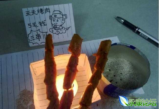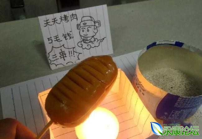 2012年1月1日 好强大的商机,同学竟在教室最后排 烧烤赚钱 把圣诞节剩下的蜡烛拿出来点上,开始烤。。。 @+~=h{jv< 第五步:同学在吃豆腐串,要几串过来烤。。。 BF8n: }9U 第六步:打包装盒,明码标价童叟无欺~~~ 84L!r 第七部:用初中传纸条的办法给前排的客户传过去,再把点餐费传回来 « 上一篇 IIS服务器下安装配置XCache缓存器方法下一篇 » 谢谢饼干仙子搭救