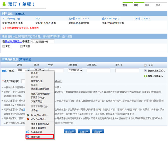 网上快速抢订火车票方法(技术贴,Firefox+Firebug)
