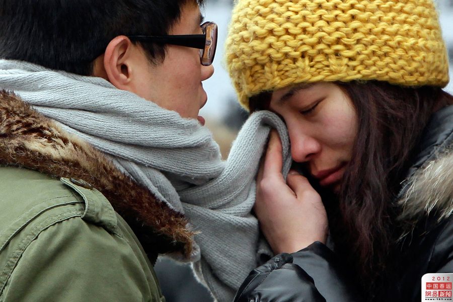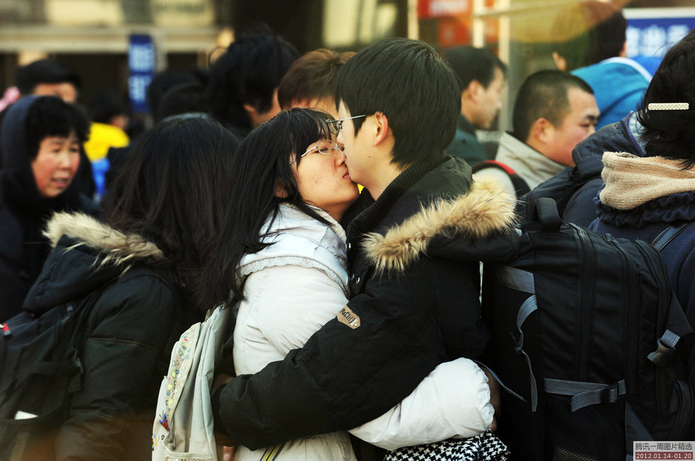 2012年1月21日 2012春运一些照片 2012年1月11日,北京西站,一对情侣吻别。图/王俭 1月19日,北京西站,一对情侣分别时,女孩用男孩的围巾擦泪。 « 上一篇 过年,回不回家?(转网易)下一篇 » 网友总结过年回家亲戚各种“毒舌”问题