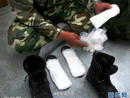 虽然用卫生巾做鞋垫是公开的秘密,可是大部分男生不好意思去超市购买。