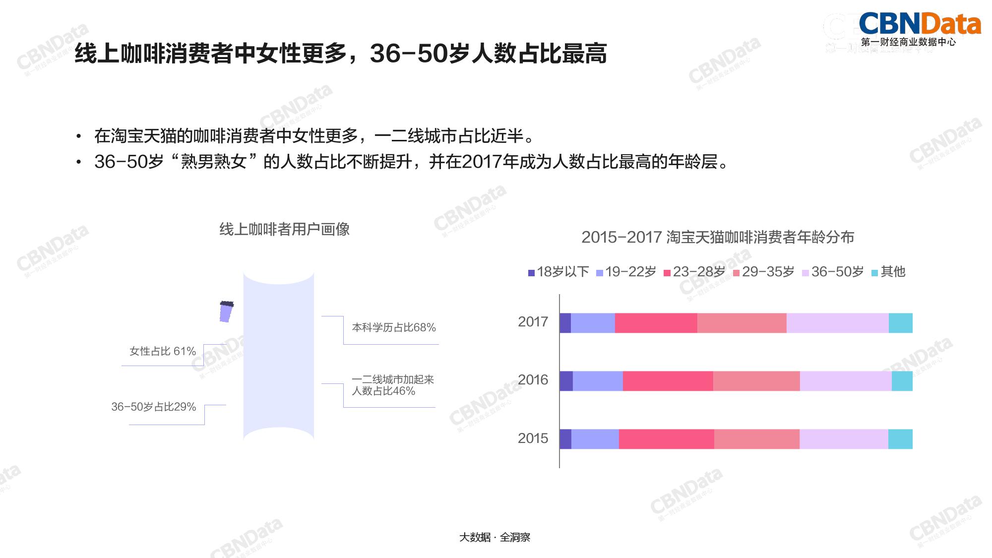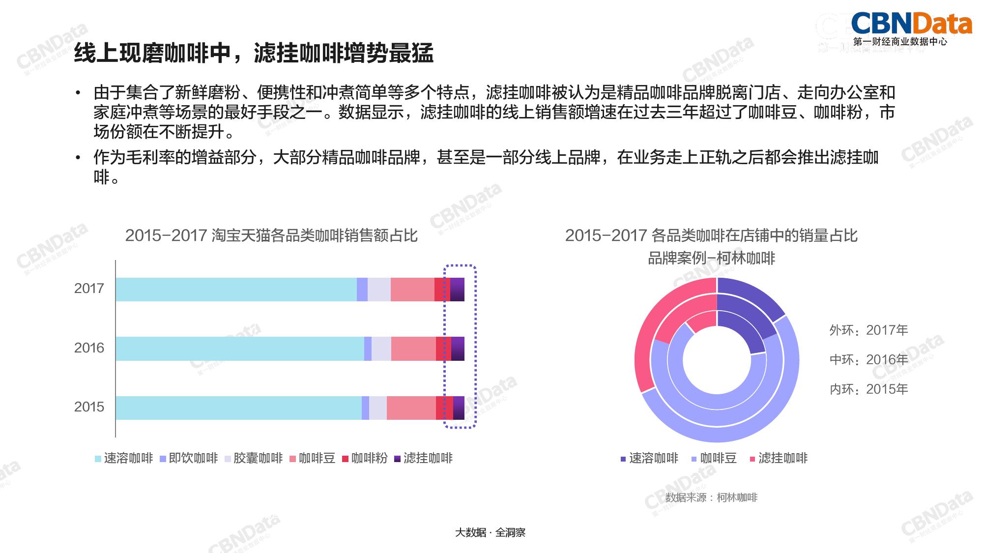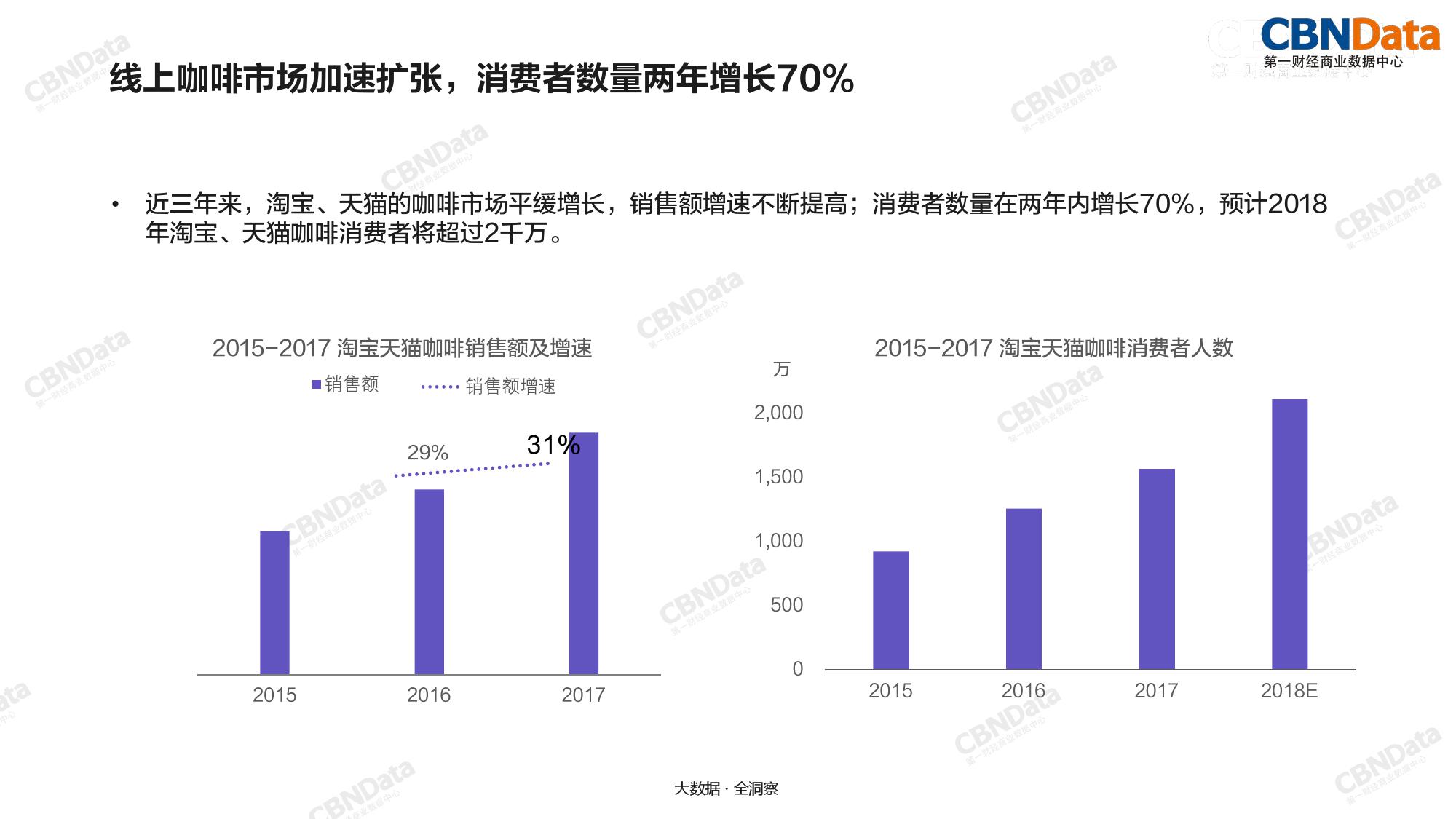 而线上市场近几年也一直“闷声发大财”。从2015年到2017年,淘宝、天猫平台上的咖啡消费者人数增长了70%,销售额也以约每年30%的速度在增长。